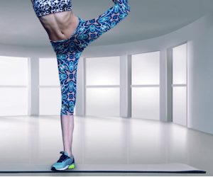 Bequeme Dreiviertel-Sporthose aus Polyester-Elasthan, Lendentasche mit Zippverschluss, Vorder- und Rückseite vollflächig bedruckt
